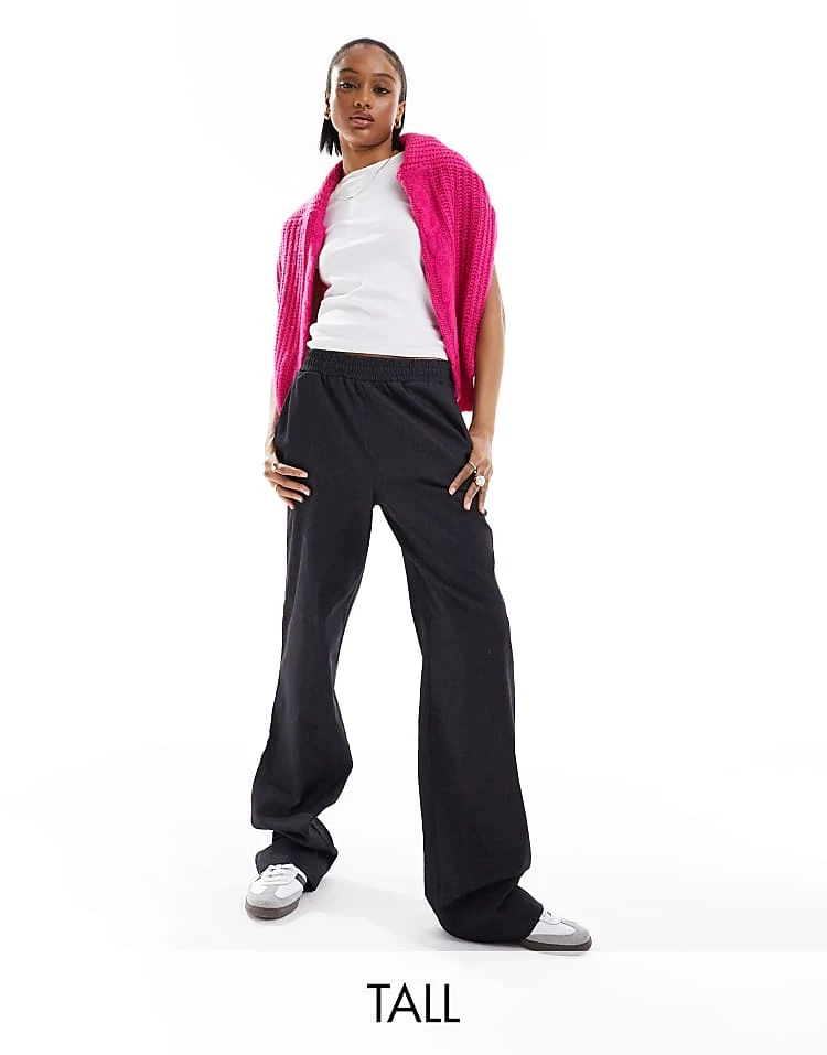 Noisy May Petite Wide Leg Jogger With Side Stripe In Black For Women