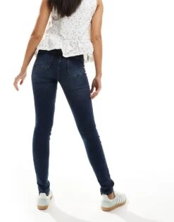 Noisy May Callie High Waist Skinny Jeans In Dark Blue Wash For Women Dark Blue Denim