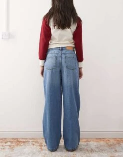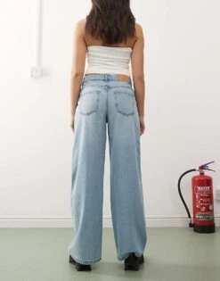 Noisy May Andy Low Rise Wide Leg Jeans In Mid Blue Wash For Women Medium Blue Denim