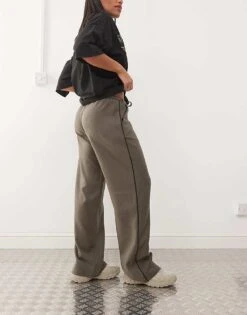 Noisy May String Tie Loose Fit Trousers In Khaki With Black Piping Detail For Women Morel
