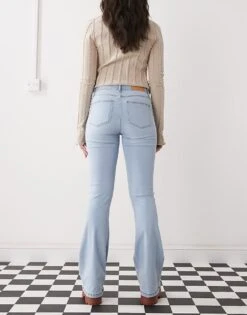 Noisy May Sallie High Waisted Flare Jeans In Light Blue Wash For Women Light Blue Denim