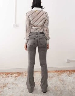 Noisy May Sallie High Waisted Flare Jeans In Ecru For Women Oatmeal